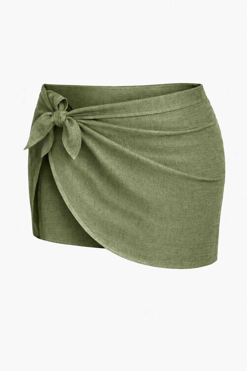 Diseño envolvente con tiras laterales que permite ajustarlo fácilmente al cuerpo.